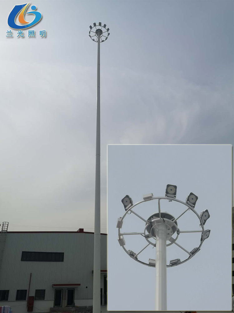 3.高桿燈頂部配設避雷針,所有連接部件為不銹鋼螺栓負載能力1000公斤。